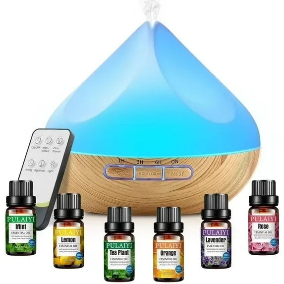 Noahstrong 500ml Essential Oil Diffuser with 6*10ml Essential Oils Set, Flower Aromatherapy Diffusers with Remote Control, Aroma Fragrant Oil Air Humidifier Vaporizer for Large Room Bedroom Office