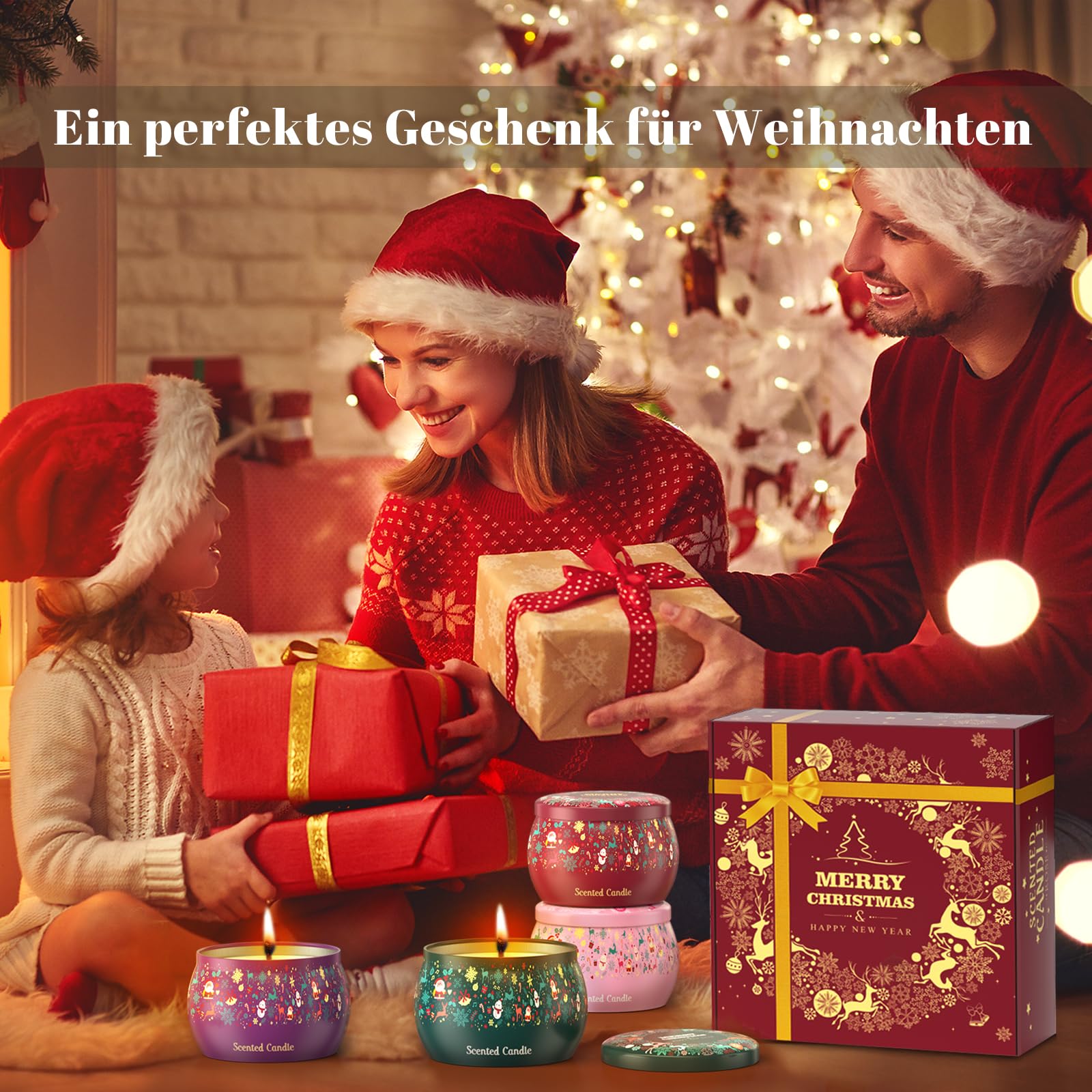 - 4 Scents: Our Christmas scented candle gift set includes 4 classic scents: Rose, Jasmine, Lavender, and Vanilla. Each candle is infused with natural essential oils to create a warm and joyful holiday atmosphere, helping you de-stress and relax.