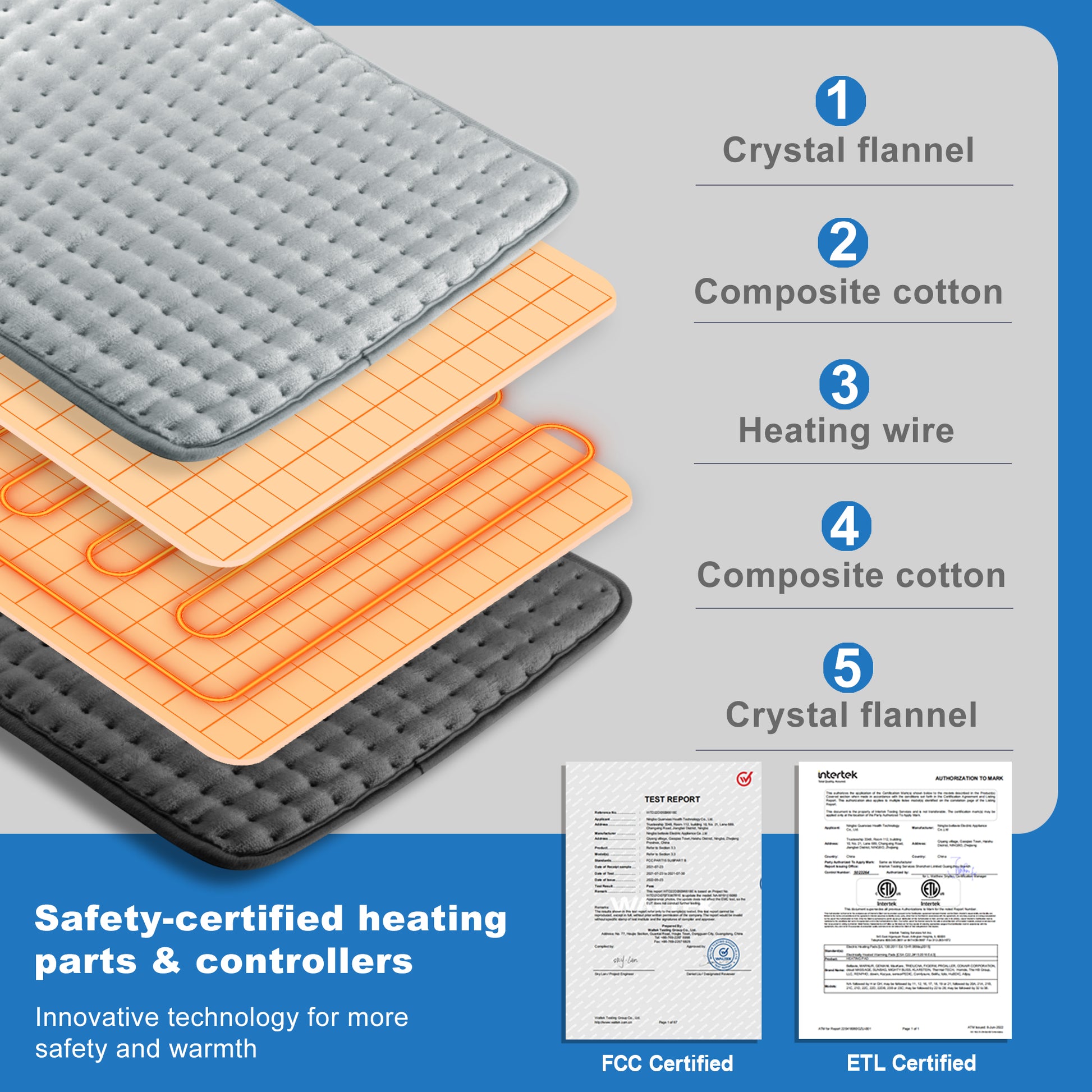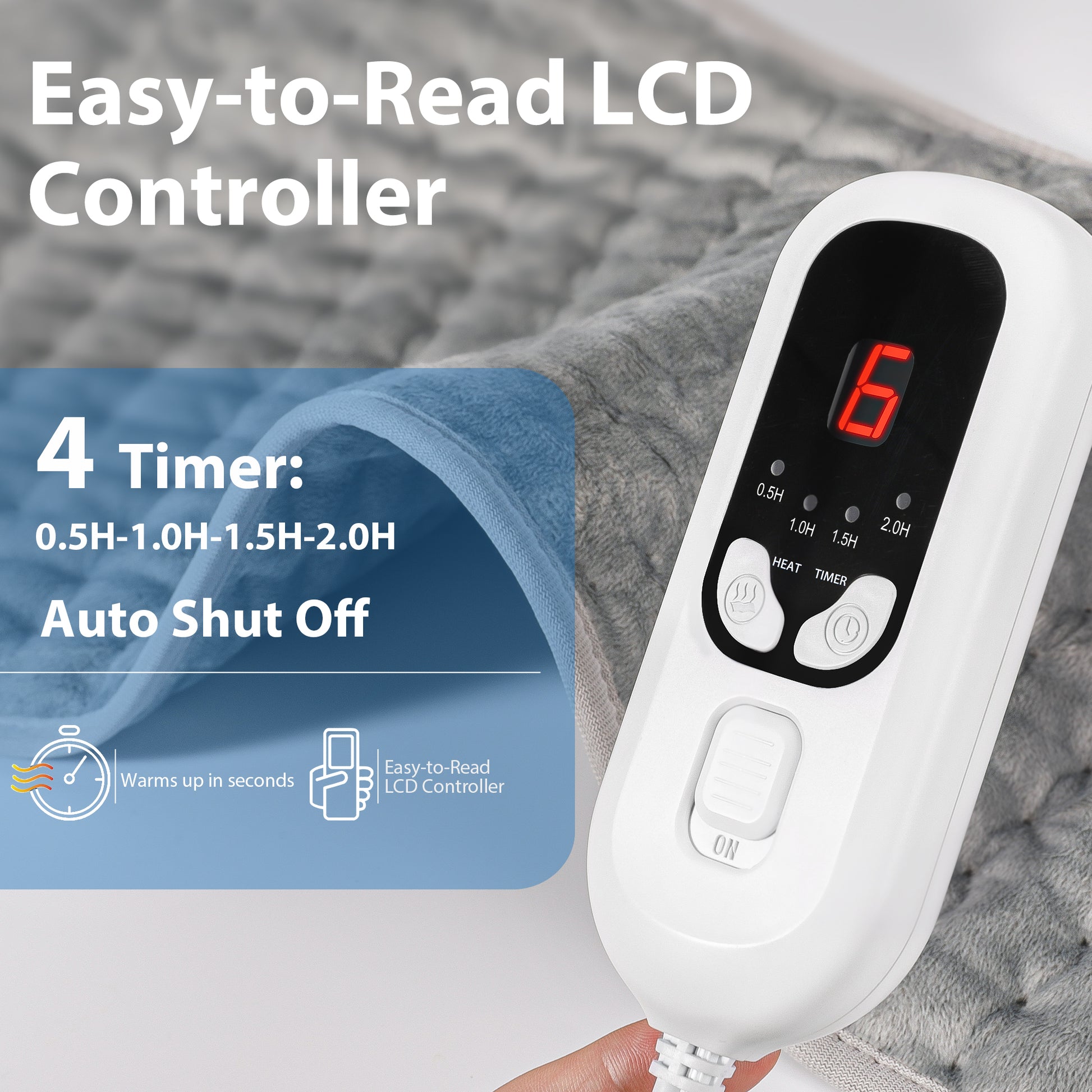 Safety and Convenience - The pad includes a 4-stage auto shut-off timer (0.5h to 2h) and is equipped with dense, fast-heating wires. With ETL certification, it guarantees not only your comfort but also your safety, preventing overheating and ensuring peace of mind.