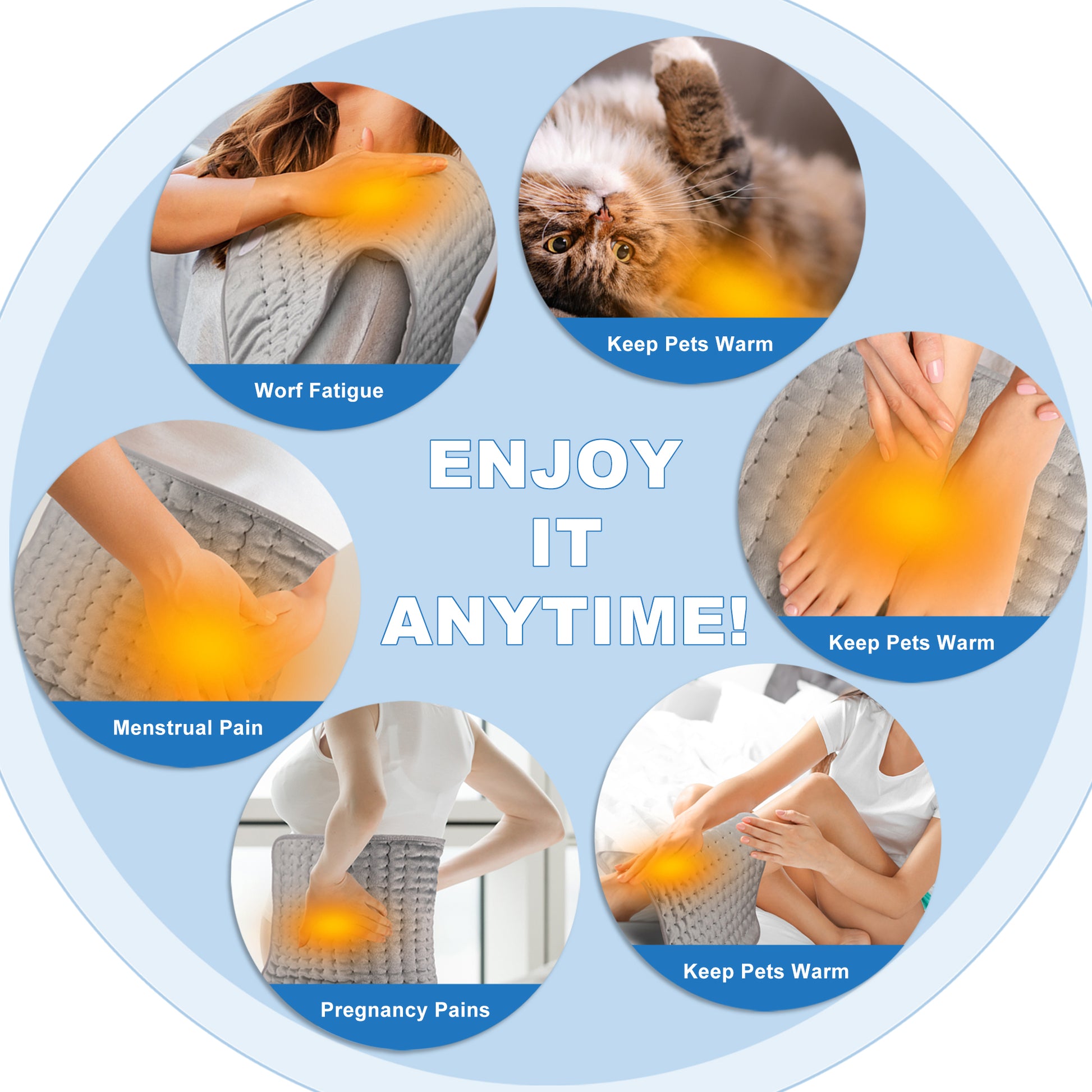 TCVOR Heating Pad is specifically designed for pain relief, cramp relief, and providing comfort during period cramp. It can help relax tight muscles, promote blood circulation, and assist in tissue repair through localized heating. Our large heating pad, measuring 12x24 inches, is ergonomically designed to ensure complete coverage and direct heating of key body areas such as the back, neck, shoulders, abdomen, legs, and even joints, providing extra warmth exactly where you need it most. Indulge in this comfortable experience – your body will thank you for it!