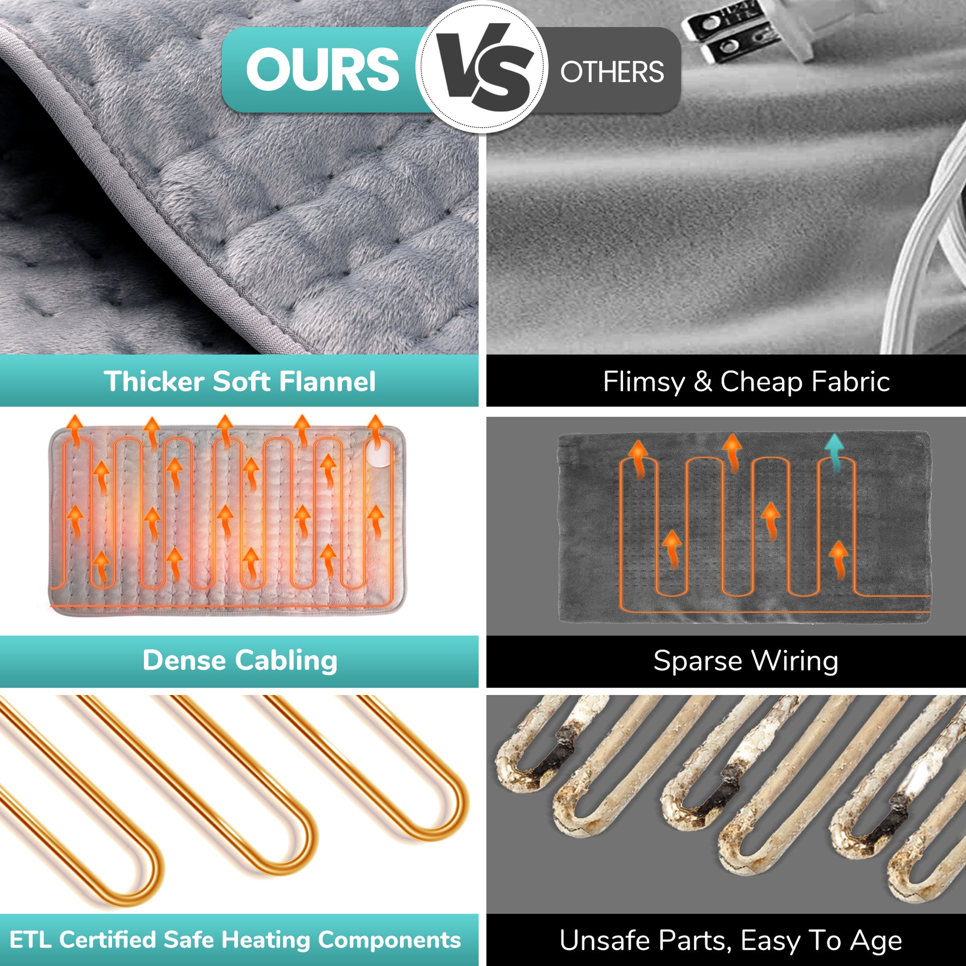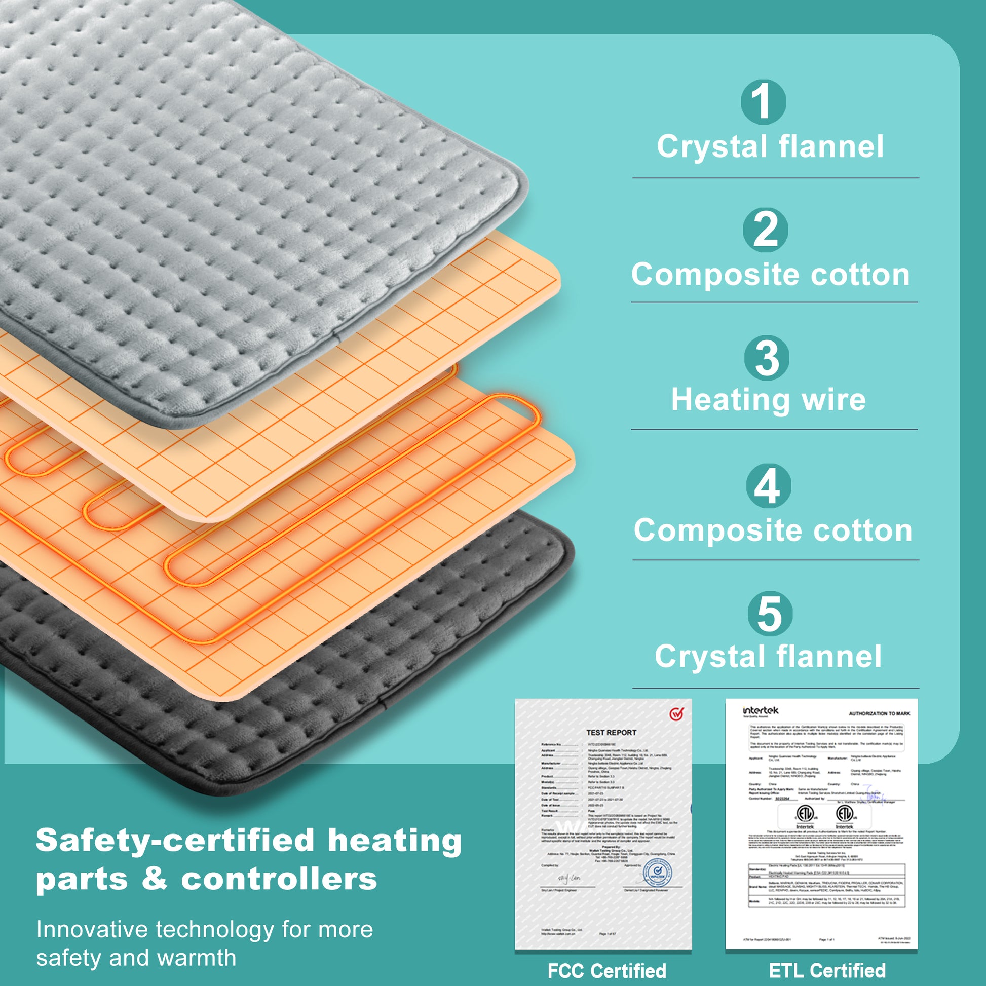 Safety and Convenience - The pad includes a 4-stage auto shut-off timer (0.5h to 2h) and is equipped with dense, fast-heating wires. With ETL certification, it guarantees not only your comfort but also your safety, preventing overheating and ensuring peace of mind.