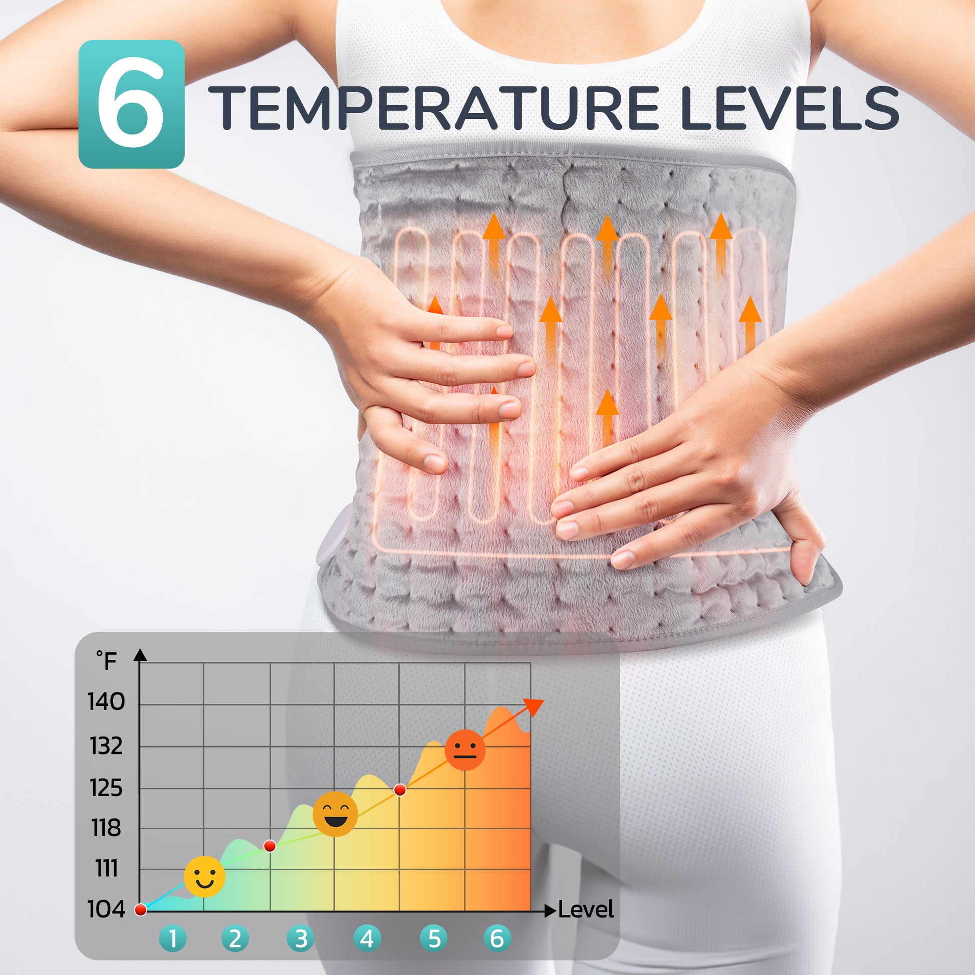Customizable Heat Settings - With 6 adjustable heat levels (104°F to 140°F), you can personalize your heating experience. Tailor the temperature to your comfort for optimal pain relief and relaxation.